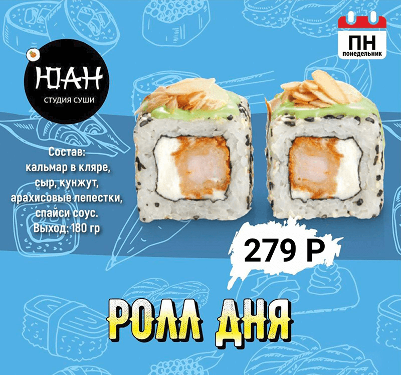 Состав: сыр, огурец, лосось и наивкуснейший угорь! Калорийность: 212 ккал. Вес:240 гр.